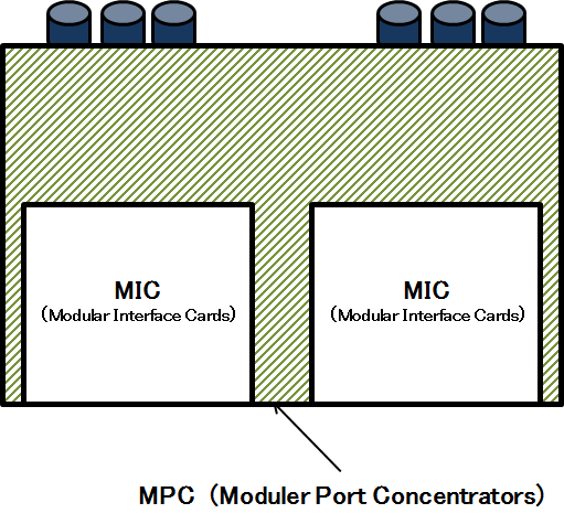 ・MPC単体で10GigaEtherを収容できるタイプとMIC(Modular Interface Cards)を最大2枚収容できるタイプがある