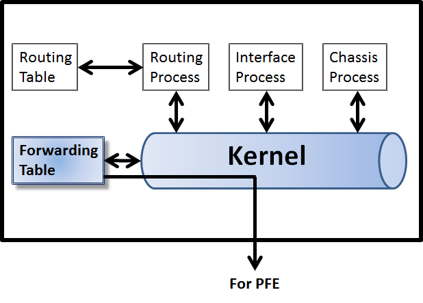 REではJUNOSやソフトウェア制御のプロセスが稼働し、ルータが稼働するために必要なあらゆる情報が保持されます。